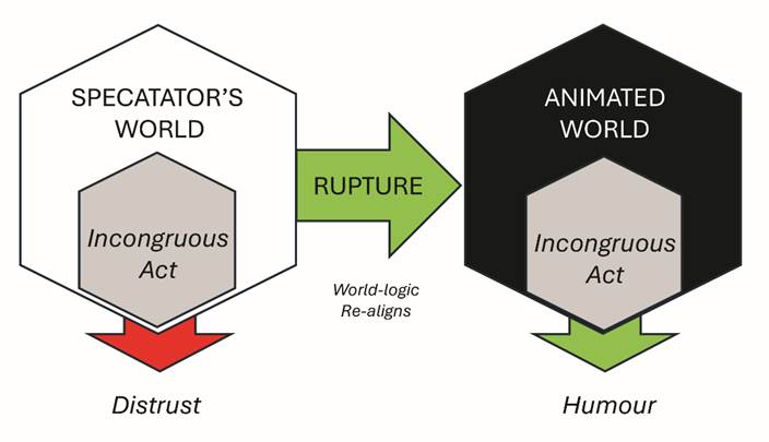 My central claim is that animation’s strongest humour arrives through a secondary rupture: the moment where you stop judging the screen by your own reality and accept the “defect” as the logical standard of the animated world.