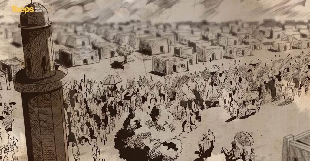 Figure 3. A still of the opening sequence from The Spirit of Dambe (Taeps Animation Studios, 2025).